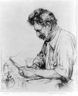 | “Albert Schweitzer,” drawing by ArthurWilliam Heintzelman(Library of Congress) |