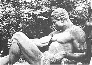 At age thirty, at the height of his fame as a scholar, musician, theologian, and philosopher, Schweitzer stunned his family and friends by announcing he would attend the University of Strasbourg to become a medical doctor with the intention of going on to serve as a medical-missionary in Africa.[35] His decision to go to Africa was the product of at least two major inspirations. First, as a young boy, Schweitzer was deeply moved by a statue of a proud and noble young African man in nearby Colmar, Alsace. The great statue, by Frédéric Auguste Bartholdi (1834-1914),[36] was located on the Champs de Mars. It was destroyed during the Second World War. Only the noble head remains.[37] Brabazon explains that because the Bartholdi statue “touched strong romantic cords in the boy’s nature,”[38] he visited the statue again and again.